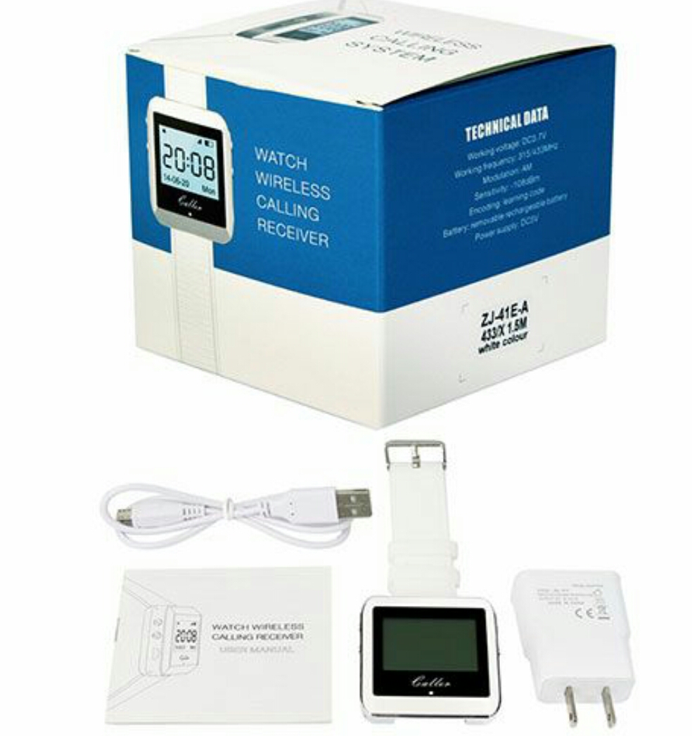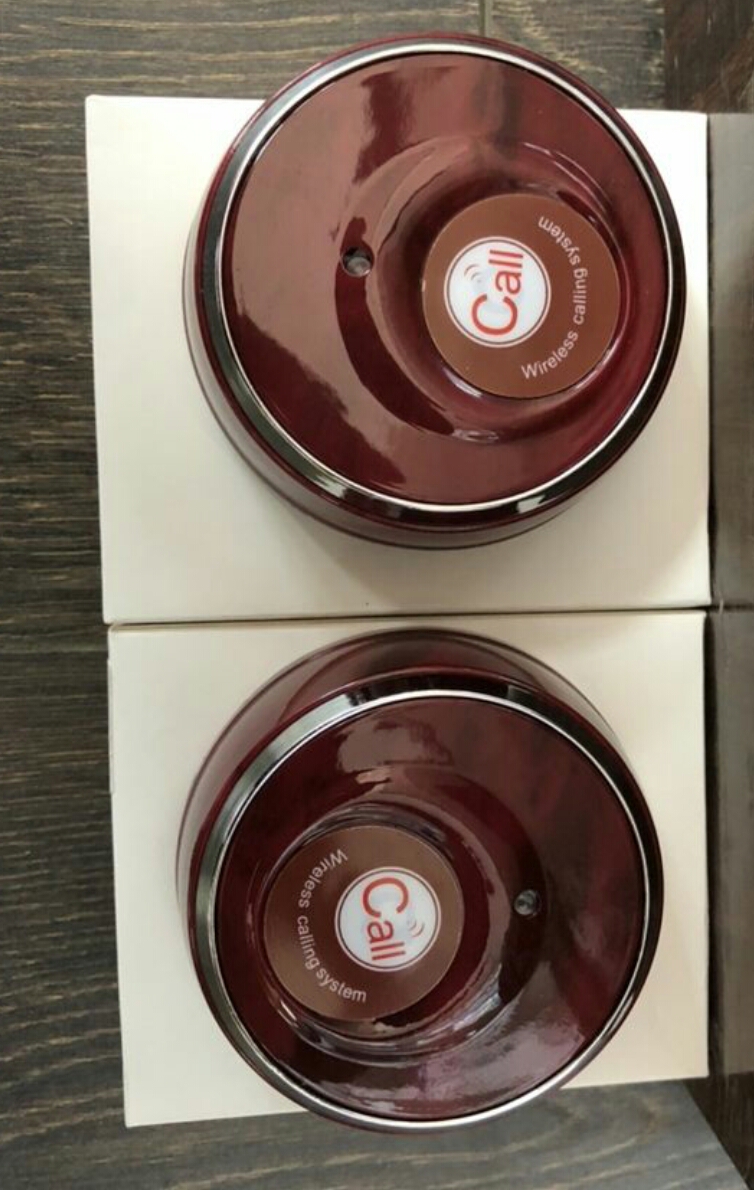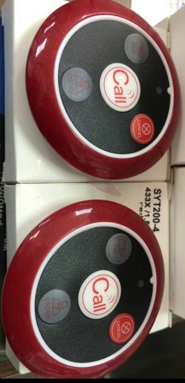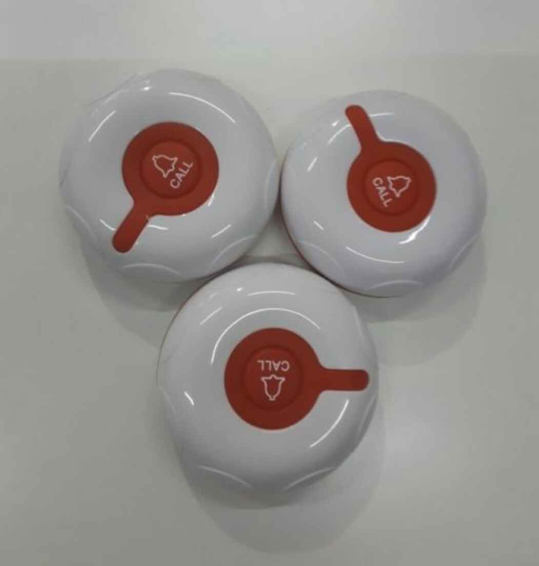 Кнопки вызова официанта отличаются лаконичным дизайном, простотой настройкой и эксплуатацией, а также стабильной безотказной работой. В процессе настройки приёмника каждой кнопке присваивается номер, который распознаётся приёмнике при вызове. Кнопки оснащены индикатором отправки вызова, который загорается красным, когда официант получает заказ. Питание устройства осуществляется от батарейки, срок действия которой составляет примерно год, после чего пользователь может легко осуществ