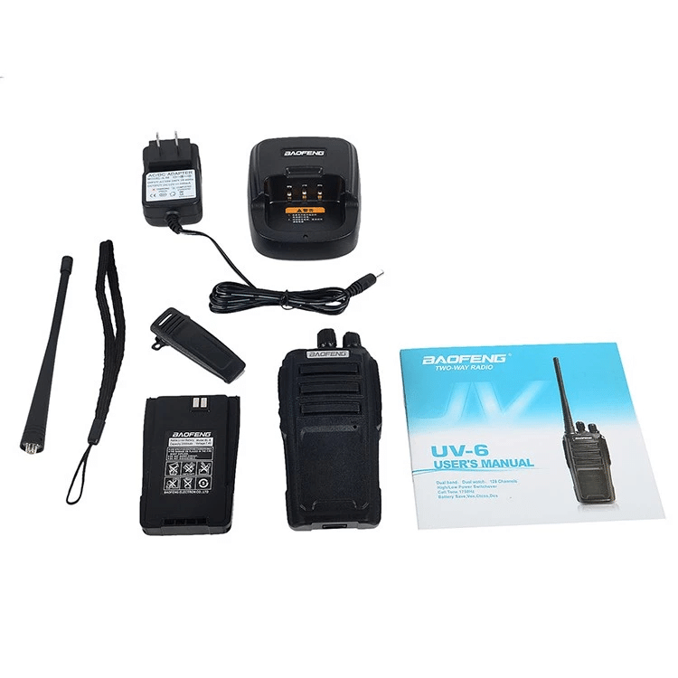 Новинка Баофенг UV - 6 радиостанция в профессиональном исполнении. Ничего лишнего из органов управления, все просто и доступно. Радиостанция Baofeng UV - 6 dual band предназначена для широких групп пользователей, которым нужна простота использования, высокая мощность передатчика и два связных диапазона (у версии Dual Band). Все настройки Baofeng UV6 программируются с помощью ПК, возможна установка 16 каналов памяти с субтонами и разносом частот. Голосовые подсказки на английском языке озвучивают все действия с радиостанцией Baofeng 6 (каналы, включение/выключение функций), что делает станцию удобной в работе.